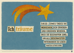 „I have a dream“ - „Ich habe einen Traum“, dieses fast schon trotzig wiederholte, visionäre Stilmittel in der Rede von Martin Luther King kennt wohl jedes Kind. Die Rassentrennung in den USA scheint mehr als sechzig Jahre später überwunden, Diskriminierungen aufgrund von Hautfarbe und Herkunft jedoch nicht. Im Gegenteil, notwendig wie nie zuvor sind jetzt Stimmen wie die von Martin Luther King. Stimmen, welche die Liebe und nicht den Hass propagieren, die Gemeinsamkeit und nicht Trennendes in den Vordergrund stellen, die nicht weiter polarisieren, sondern nach Lösungsmöglichkeiten über jegliche Grenzen hinweg suchen. Gewaltlosigkeit auf allen Ebenen des menschlichen Zusammenlebens, davon sprach King in seiner Weihnachtspredigt. Fast sechzig Jahre später nimmt das Jahresthema der action 365 diesen Traum wieder auf, auch vor dem Hintergrund des zehnjährigen Jahrestags des Sommers der Migration: „Zusammenleben ermöglichen“. Ein friedliches Zusammenleben sollte nicht nur ein Wunsch, ein Traum bleiben, sondern ein Ziel sein, das weiterhin bewusst verfolgt wird.